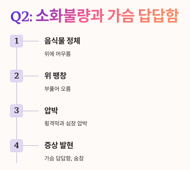 Q2: 소화가 안될 때 가슴이 답답한 건 왜 그런가요?