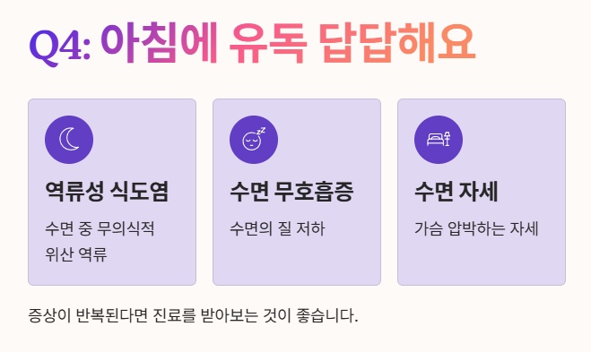 Q4: 자고 일어났을 때 유독 가슴이 답답해요.