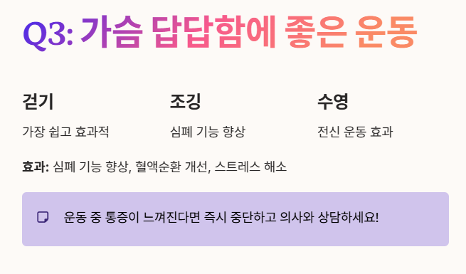 Q3: 가슴 답답함에 좋은 운동이 있을까요?