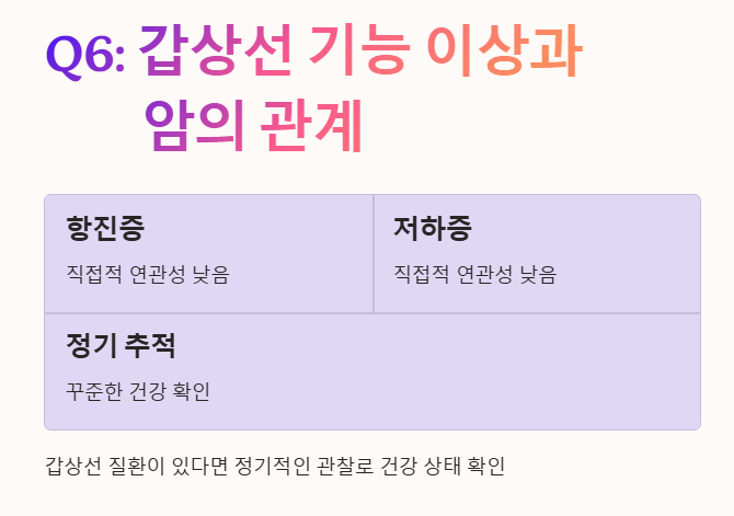 Q6: 갑상선 기능 항진증이나 저하증이 있으면 갑상선암에 걸릴 확률이 높나요?
