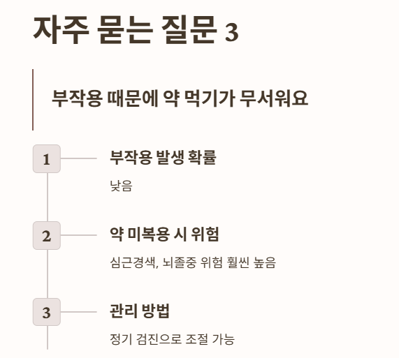 - 대부분의 부작용은 경미하거나 조절 가능하니, 너무 걱정하지 마시고 정기적인 검진을 받는 것이 중요해요.