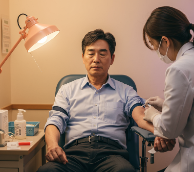- 8시간 이상 금식 후 총 콜레스테롤, LDL 콜레스테롤, HDL 콜레스테롤, 중성지방 수치를 확인합니다.