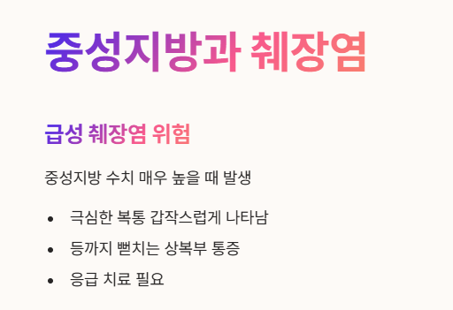 중성지방이 너무 높으면 급성 췌장염을 일으킬 수 있는데요.