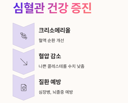 꾸준히 섭취하면 심장병이나 뇌졸중과 같은 심혈관 질환 예방에 기여할 수 있습니다.