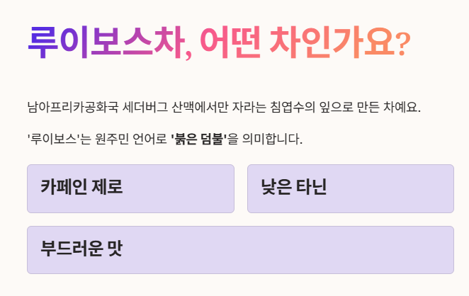 친구에게 선물했던 루이보스차 한 잔이 이렇게나 많은 장점을 가지고 있었다니 놀랍지 않나요? 👍