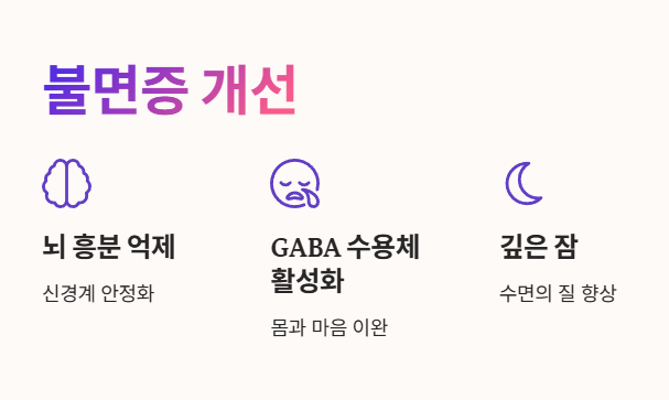 - 스트레스 호르몬인 코르티솔의 분비를 조절하고, 행복 호르몬인 세로토닌 생성을 도와 불안감과 우울감을 줄이는 데 효과적이에요.