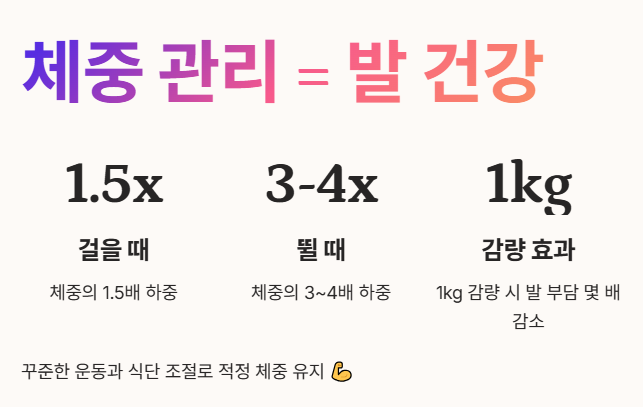 꾸준한 운동과 식단 조절을 통한 적정 체중 유지는 발 건강의 기본이랍니다! 💪