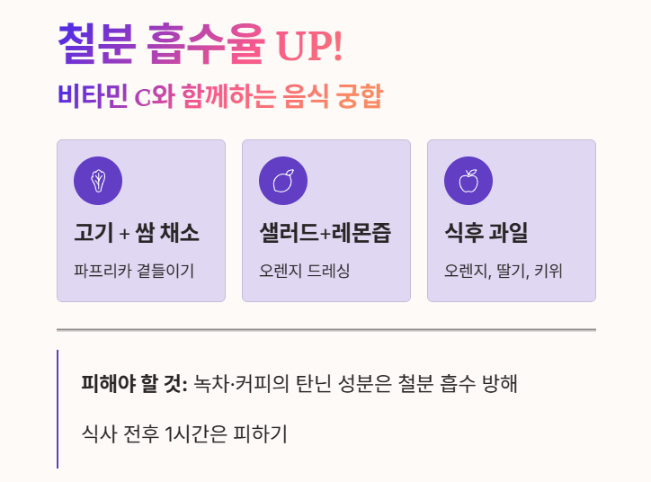 4. 🍊 철분 흡수율 UP! 음식 궁합