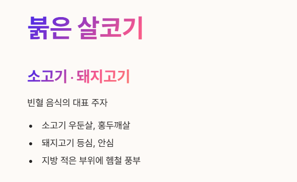 2. 🥩 빈혈에 좋은 음식(동물성)
