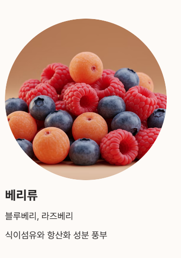 • 베리류: 블루베리, 라즈베리 등은 맛도 좋고 식이섬유와 항산화 성분이 풍부해요.