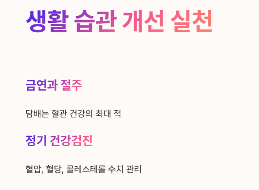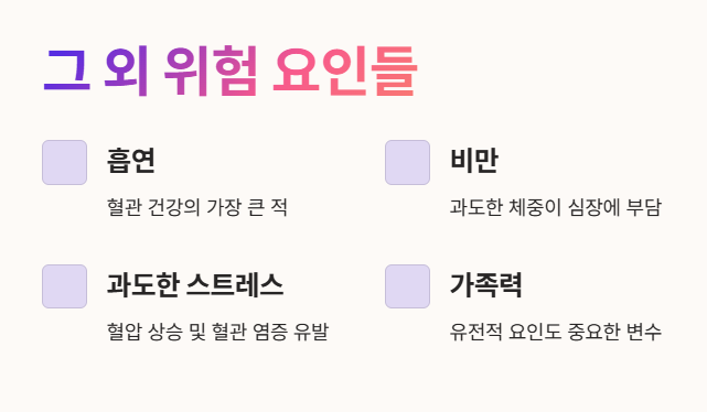 • 담배는 혈관 건강의 가장 큰 적이에요. 반드시 금연해야 합니다.