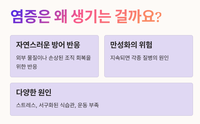 하지만 이 염증이 만성화되면 각종 질병의 원인이 될 수 있어요. 😥