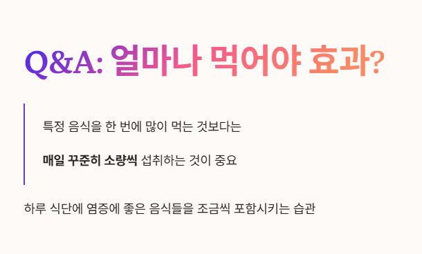 Q1: 염증에 좋은 음식, 얼마나 먹어야 효과가 있나요?