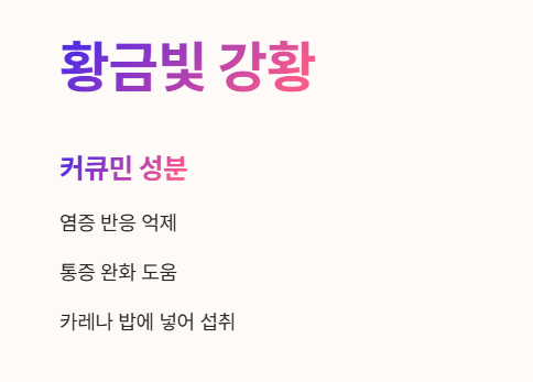 - 커큐민 성분이 염증 반응을 억제하고 통증을 완화하는 데 도움을 줘요.