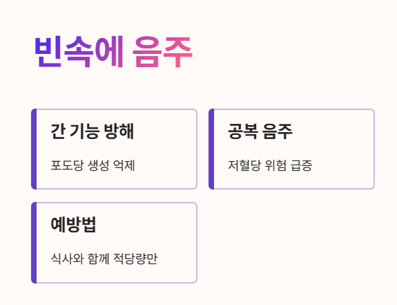 • 특히 빈속에 술을 마시면 저혈당 위험이 매우 높아지므로, 반드시 식사와 함께 적당량만 마시는 것이 중요합니다.