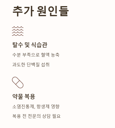 - 가장 먼저 병원을 방문해 정확한 원인을 파악하고, 기저 질환(고혈압, 당뇨 등)을 꾸준히 치료받아야 해요. 🩺